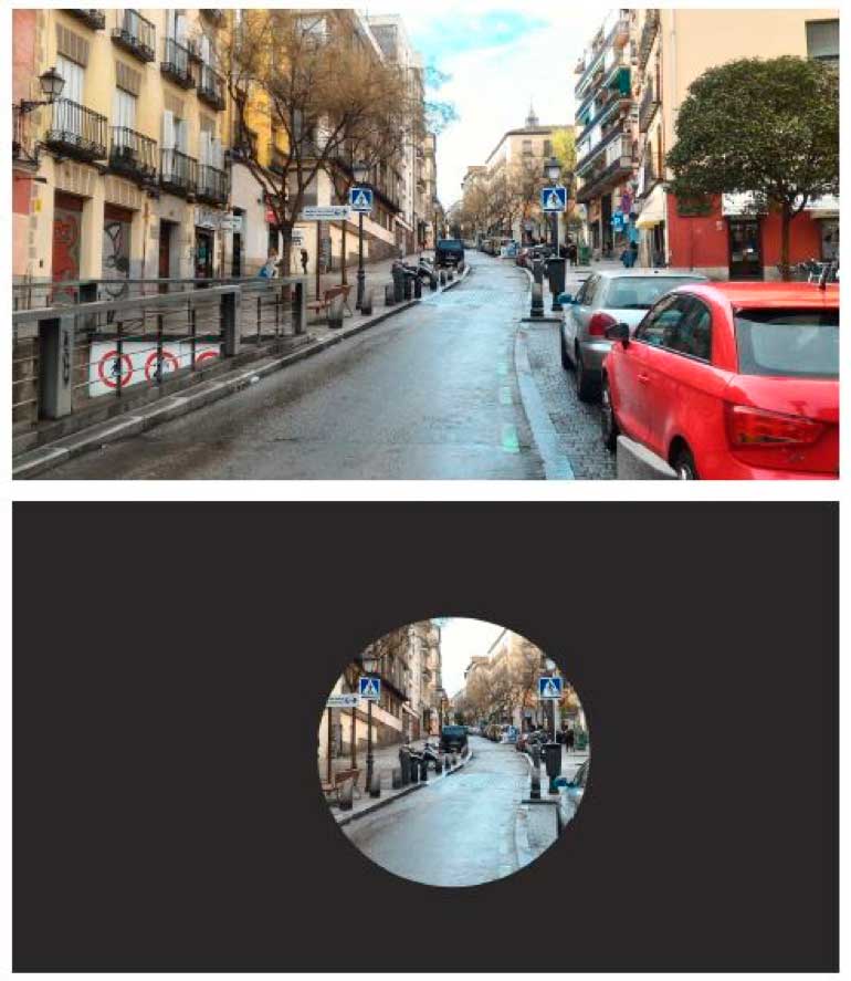 Arriba, escena con un campo visual binocular normal, abajo con el CV muy afectado.
