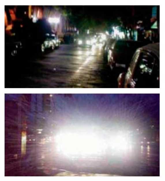 Los deslumbramientos no sólo se pueden producir de día. Algunos pacientes afectados con deslumbramientos refieren que los faros de los coches les deslumbran tanto que casi ni los pueden ver. Muchas veces, estos deslumbramientos son descritos como halos alrededor de las luces, o como si de las luces de los faros partiesen multitud de rayos luminosos.