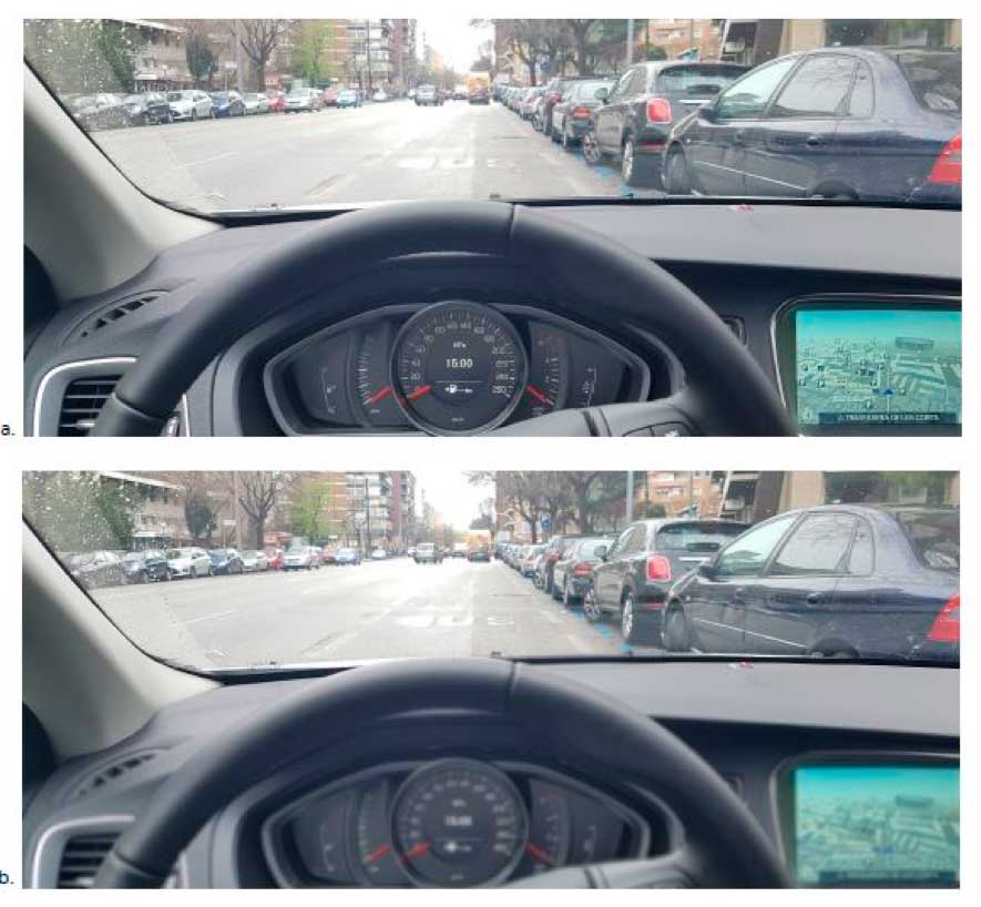- Comprobar que nuestro campo visual binocular abarca toda la amplitud de la luna del coche incluyendo los dos espejos retrovisores. Podemos pedir a un conocido que ande delante nuestro y trataremos de identificar cuándo desaparece de nuestro campo visual sin mover la cabeza de un punto central alejado.