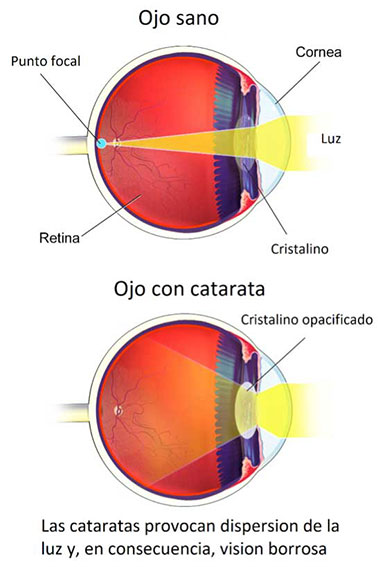 Muchos de los síntomas que provoca la catarata son debidos a la dispersión de la luz al chocar con la opacidad.