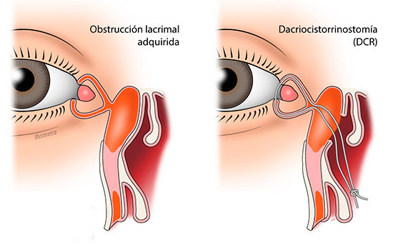 Obstrucción de vías lagrimales: Cuando se obstruye la vía de evacuación lagrimal, la lágrima cae en forma de lagrimeo (epífora). Hay dos tipos: