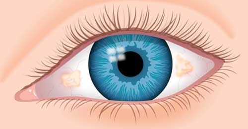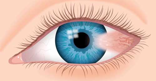 Pinguécula y pterigium que son crecimientos anormales de la conjuntiva